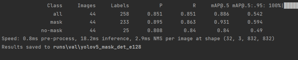 python val.py --weights runs/train/yolov5_mask_det_e128/weights/best.pt --data coco128.yaml --img 832 --augment --half --name yolov5_mask_det_e128