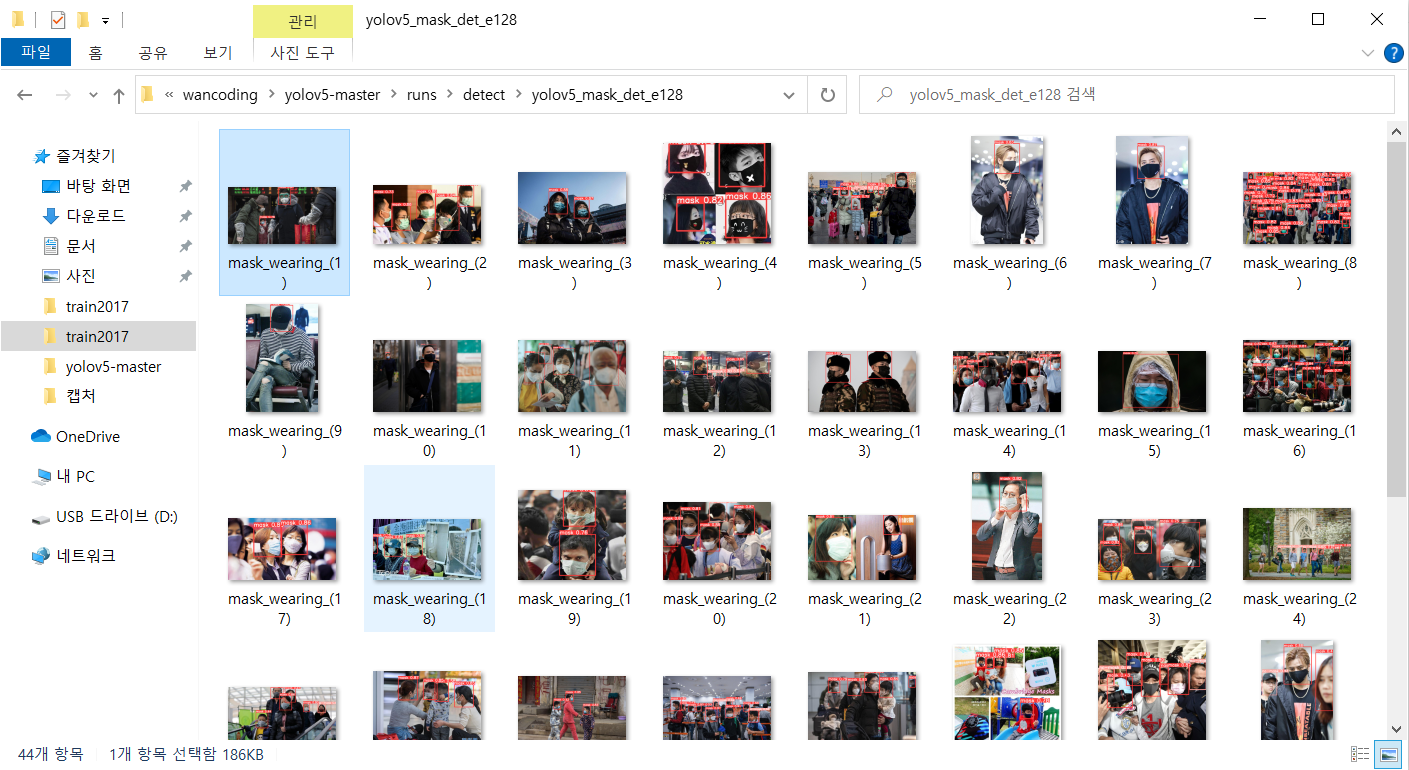C:/Users/Wana/wancoding/yolov5-master/runs/detect/yolov5_mask_det_e128 폴더 안에